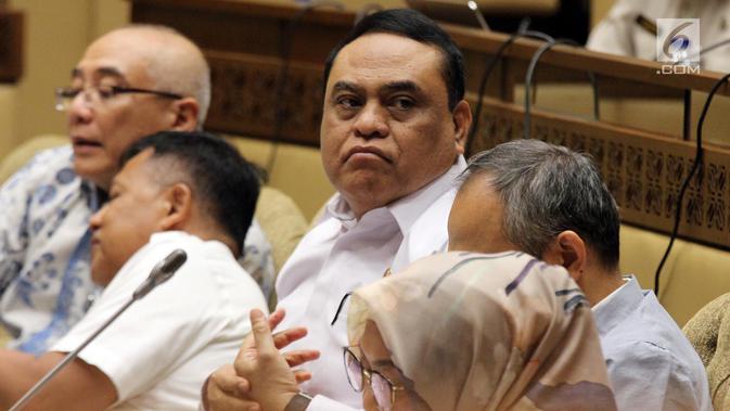 Menteri Pemberdayaan Aparatur Negara dan Reformasi Birokrasi Syafruddin saat rapat kerja dengan Komisi II DPR di Jakarta, Selasa (30/10). Rapat diikuti Komisi Aparatur Sipil Negara (KASN) dan Badan Kepegawaian Negara (BKN). (Liputan6.com/JohanTallo)