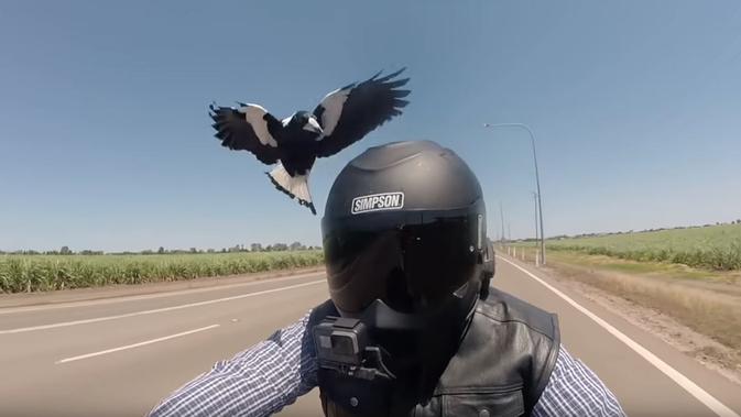 Beruntung, saat berkendara motovlogger ini menggunakan helm. Seperti tengah melakukan pengetesan untuk pelindung kepalanya tersebut, vlogger ini terhindar dari serangan burung Magpies yang berkali-kali mematuk helmnya selama perjalanan.