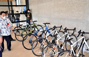 式典後に内覧会を開き、身体障害者や自転車の持ち込みに対応するため改修したスロープ付きの客室や自転車の整備用スペース、ロードバイクやクロスバイクなど貸し出し用の自転車なども公開した。