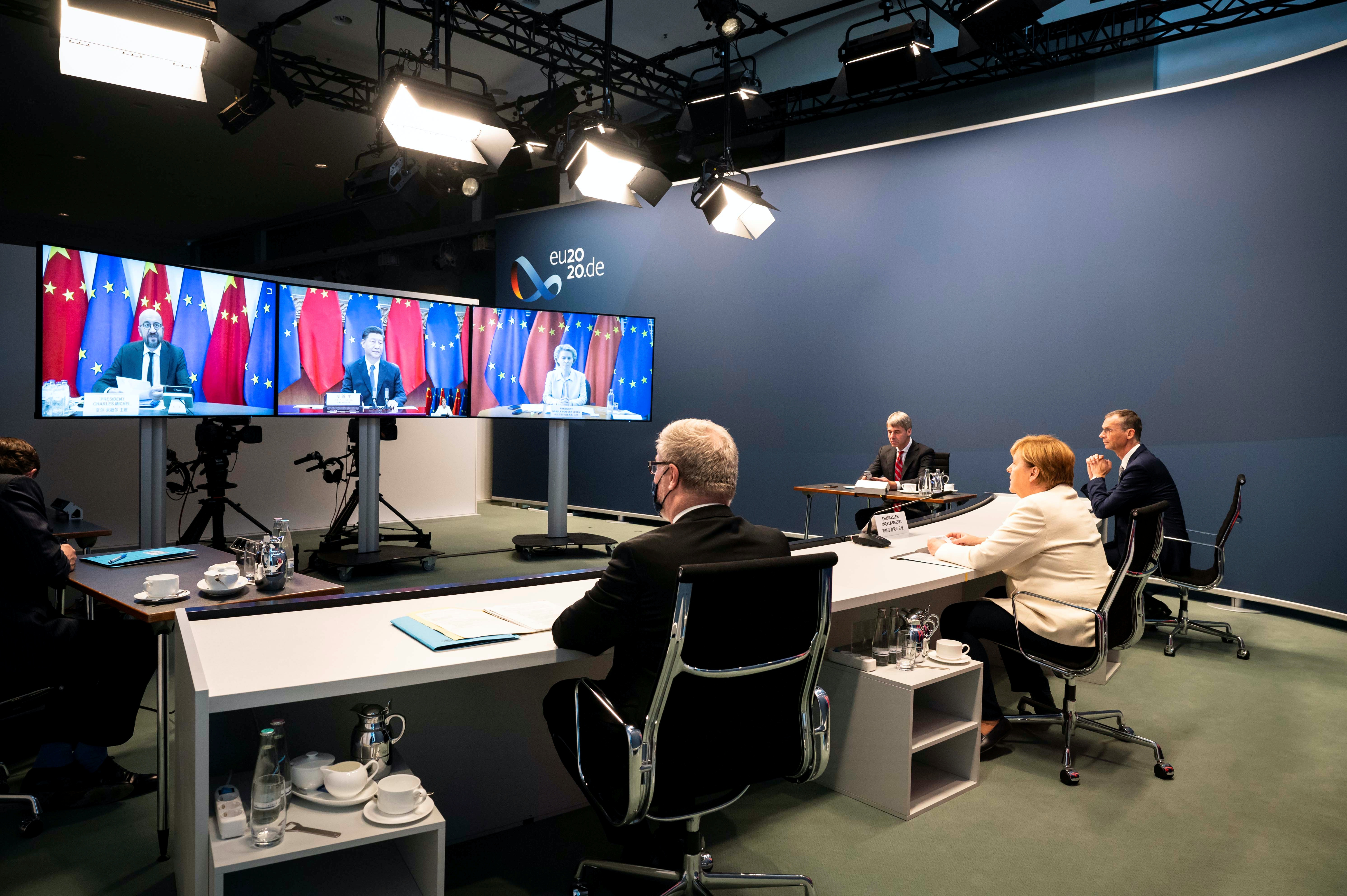 中國國家主席習近平與德國總理默克爾(Angela Merkel)、歐洲理事會主席米歇爾(Charles Michel)、歐盟委員會主席馮德萊恩(Ursula von der Leyen)周一(14日)舉行視像會晤。會後默克爾表示,與習近平討論了香港以及中國少數族裔的問題,並指中國經濟在過去15年變得更加強大,意味著需要更公平的競爭。
