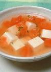 スープはトマトと豆腐のコンソメスープを。メインおかずがクリーム煮なので、スープはあっさりと食べられる食材を入れるのが良いですね。