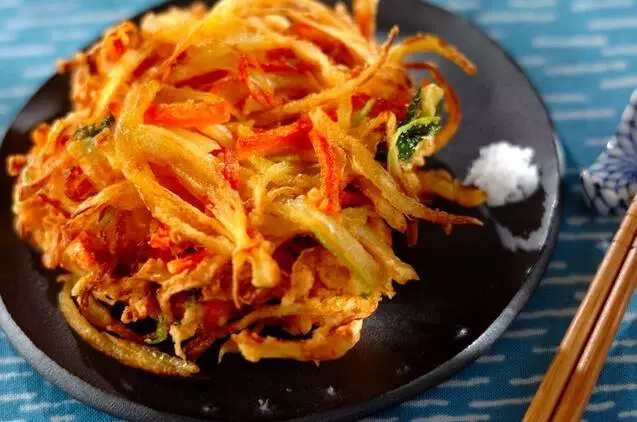 残り野菜を格上げする「かき揚げ」は玉ネギだけでも立派なおかずが完成します。天つゆにつけたり塩をつけたり、うどんやお蕎麦に合わせても◎。揚げたてのサクッと食感と玉ネギの甘みを味わって下さい。