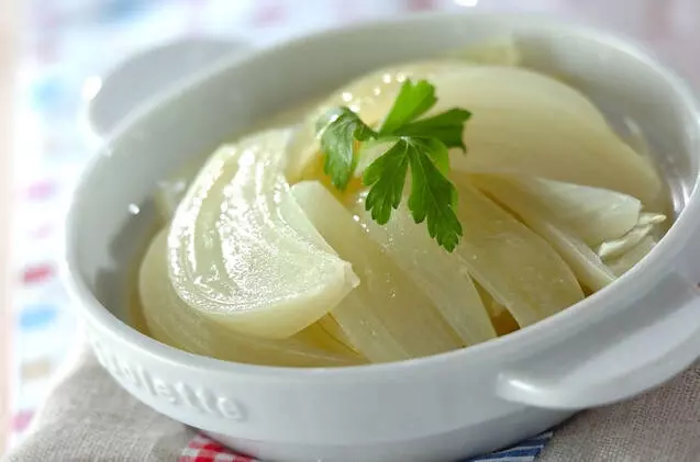 じっくり焼いた玉ネギを白ワインビネガーのマリネ液に漬け込んだ洋風レシピ。ごま油を中華風にして南蛮漬けにしても良いですね。日持ちするので常備しておきたい爽やかな一品です。