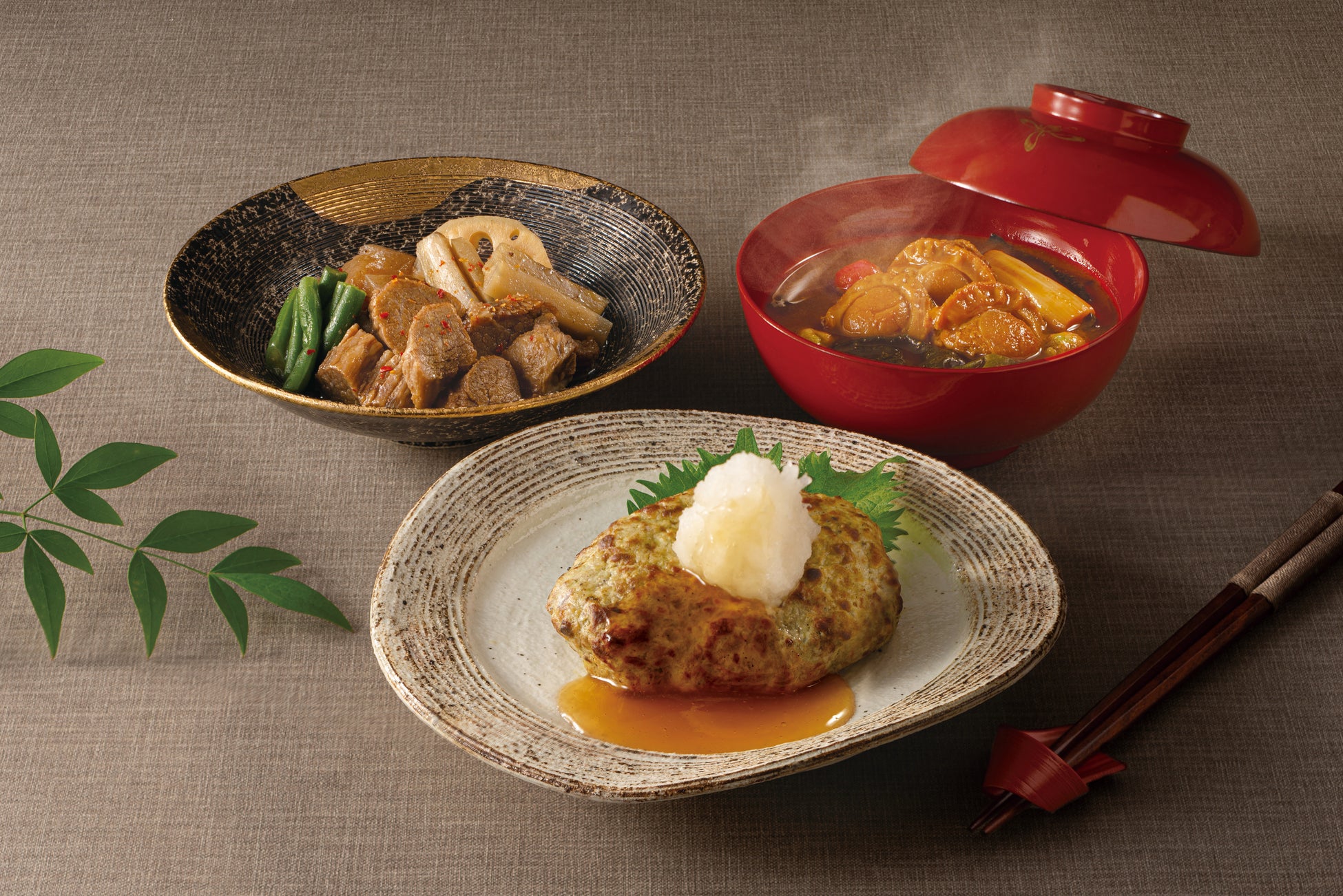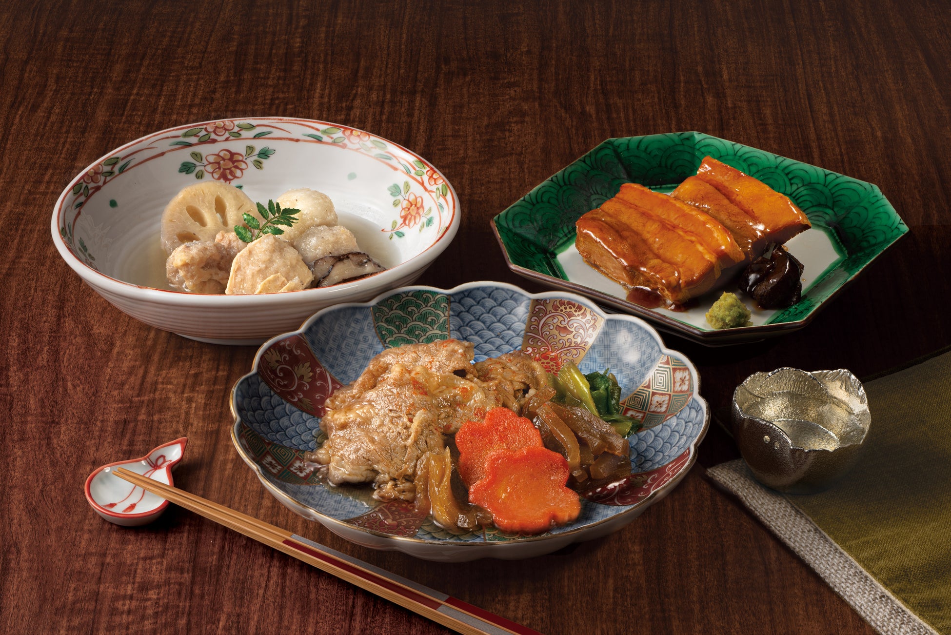 独自の発想を盛り込んだ、四季折々の、華やかで楽しく「品」のあるお料理がコンセプト。かつお出汁をベースに、牛・豚・鶏、各素材の特徴・強みをアクセントに効かせました。かつお出汁をベースにするとどうしても薄味になってしまいますが、ご家庭の場合、かつお出汁だけでなく、もう少ししっかりとした味付けも好まれると思いますので、〝薄味の中の濃い味〞をどのように実現するのか?に苦労しながらこだわり抜いた逸品です。