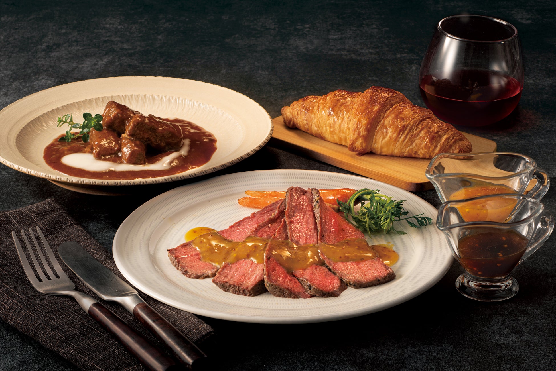 しっとりローストビーフ(黒トリュフソース、ハニーマスタードソース)