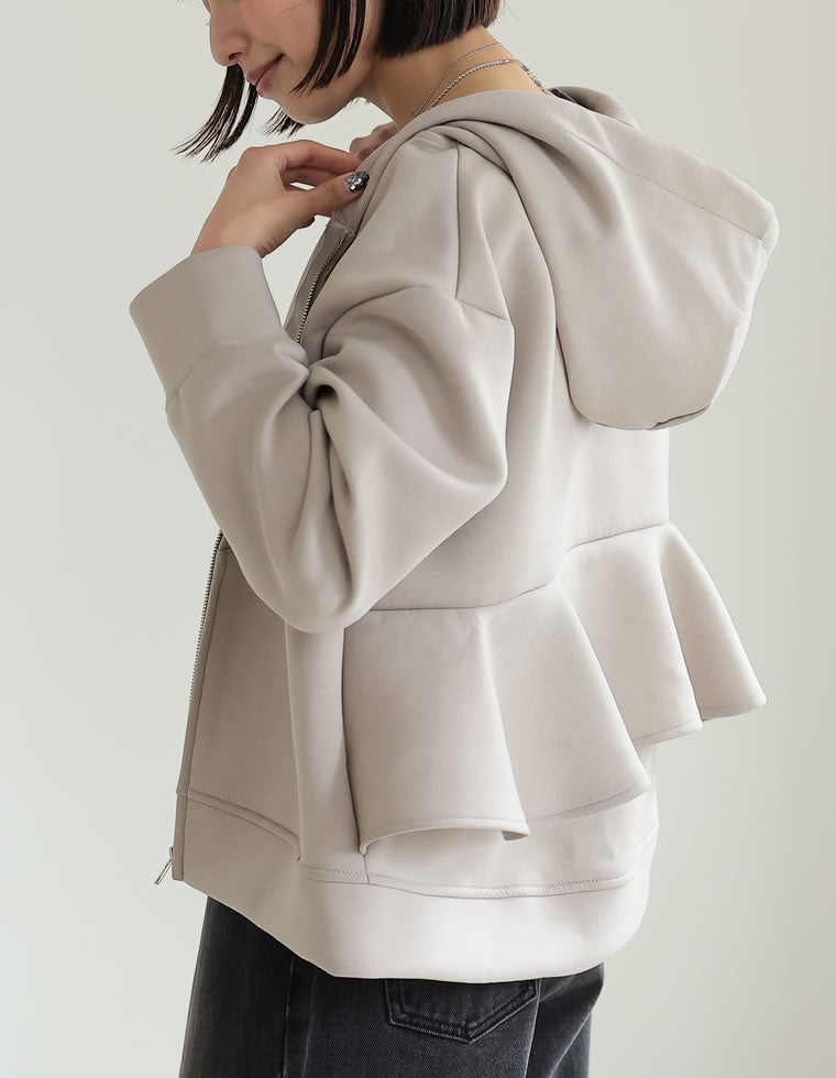 カジュアルなイメージがあるパーカーにフェミニンな要素がプラスされ、パンツスタイルだけではなく、スカートスタイルにも溶け込む、大人のこなれたスタイリングが完成するアイテムです。